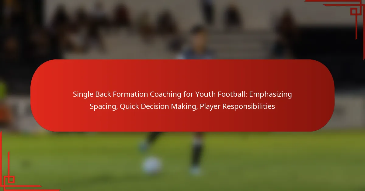 The single back formation is a strategic approach in youth football that prioritizes spacing, quick decision-making, and defined player responsibilities. By teaching players to maintain proper distance and understand their roles, coaches can enhance offensive effectiveness and facilitate smoother gameplay. Emphasizing these elements not only improves individual performance but also fosters better teamwork and communication on the field.